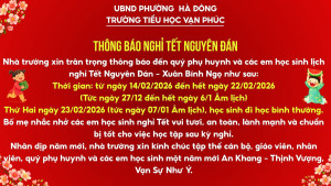 Nhà trường xin thông báo lịch nghỉ Tết Nguyễn Đán- Xuân Bính Ngọ đến quý phụ huynh học sinh.