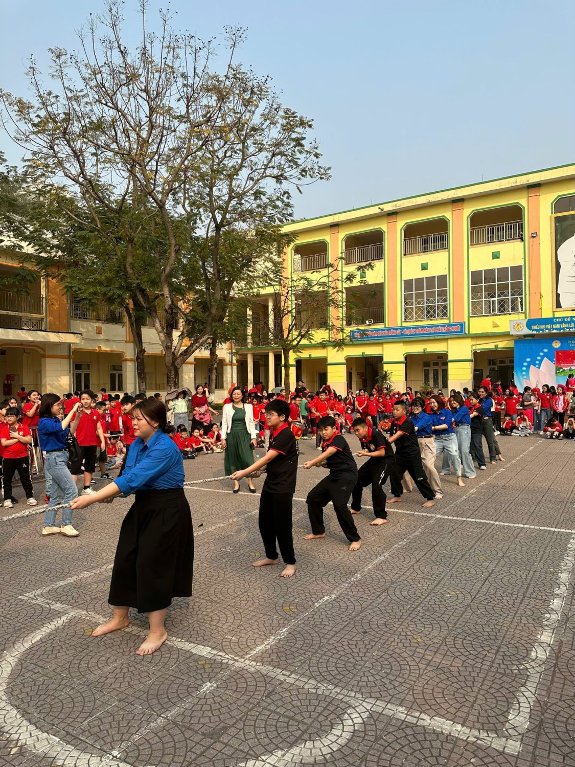 Trò chơi kéo co đã diễn ra vô cùng kịch tính và hấp dẫn. Với sự tham gia của các đoàn viên là các cô giáo trẻ và các em học sinh trong Ban chỉ huy liên đội của trường Tiểu học Vạn Phúc. Các đội thi đấu hết mình, phối hợp nhịp nhàng để giành chiến thắng. Tiếng hò reo cổ vũ vang dội khắp sân trường, tạo nên không khí náo nhiệt và đầy hào hứng. Đây không chỉ là trò chơi thể lực mà còn rèn luyện tinh thần đoàn kết, quyết tâm của cô và trò trong nhà trường.