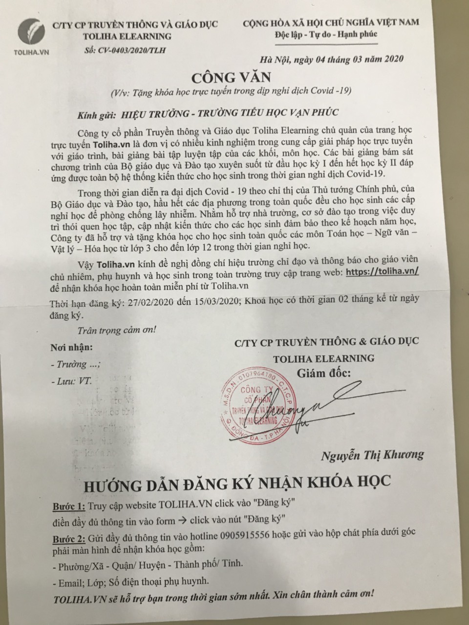 V/v tặng khóa học trực tuyến trong dịp nghỉ dịch Covid 19