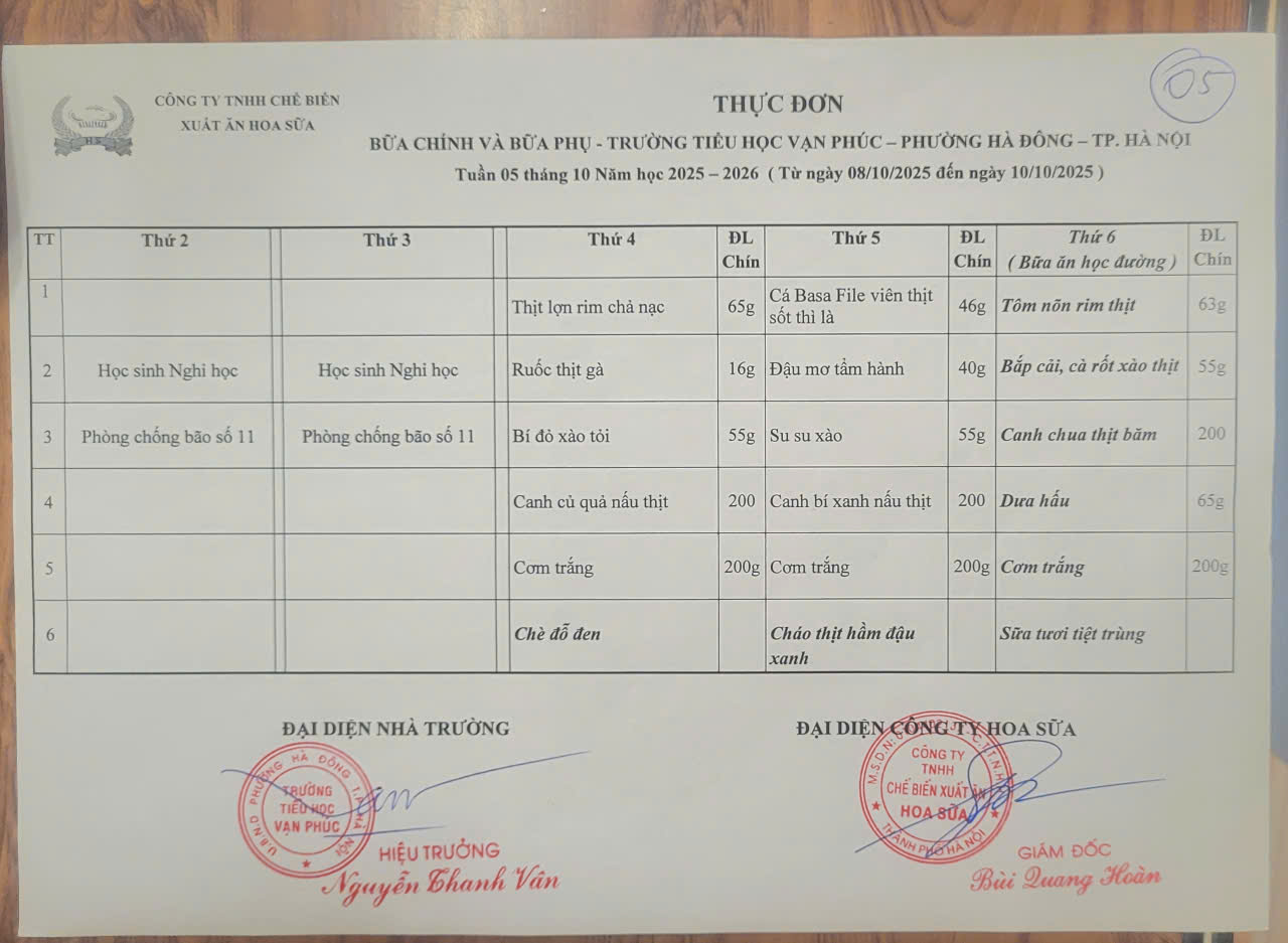 Nhà trường kính gửi thực đơn bán trú tuần 5 từ ngày 6/10- 10/10/2025.